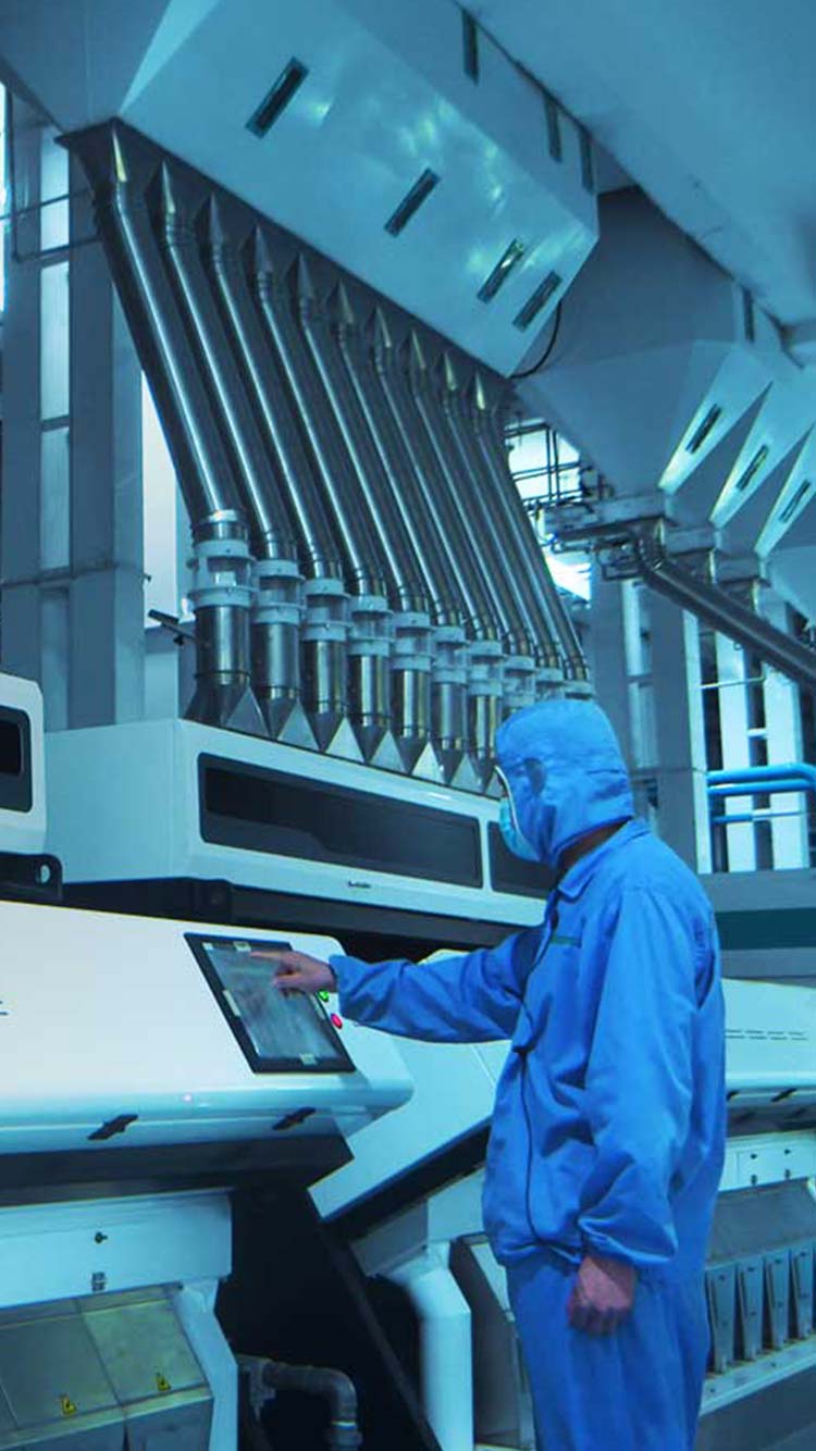 在生產加工環(huán)節(jié),采用國際先進生產線,每粒米都需歷經碾、刷、拋、選全流程加工,輕磨輕拋,適度加工,最大保留米中營養;國際先進雙紅外色選機,通過粒型、水分、色值等全方位篩選,保證大米品質;整個大米加工0接觸、0環(huán)節(jié),全部采用智能化管理,健康安心。